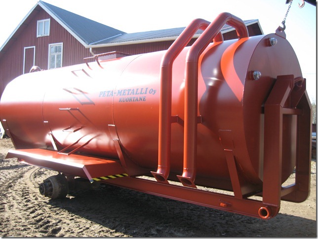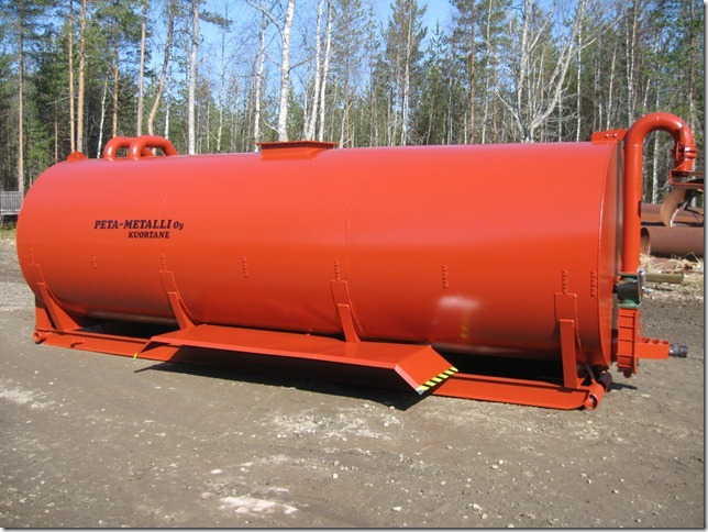 Koukkulava alustalle tehty 16 kuution levityssäiliö.